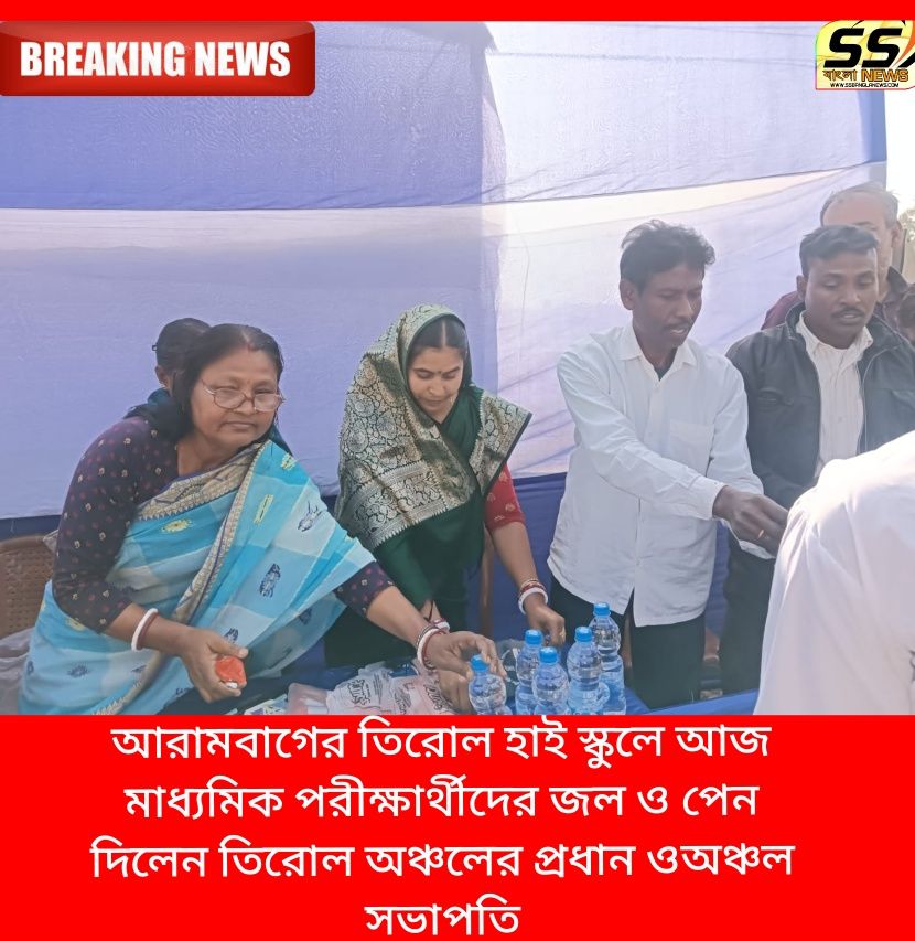 আরামবাগের তিরোল হাই স্কুলে আজ মাধ্যমিক পরীক্ষার্থীদের জল ও পেন দিলেন তিরোল অঞ্চলের প্রধান ওঅঞ্চল সভাপতি
