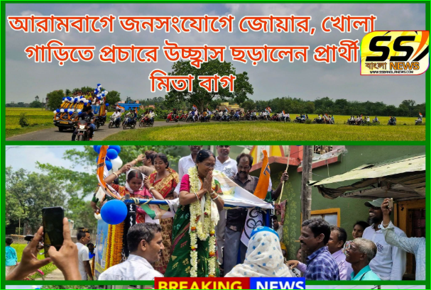 আরামবাগে জনসংযোগে জোয়ার, খোলা গাড়িতে প্রচারে উচ্ছ্বাস ছড়ালেন প্রার্থী মিতা বাগ