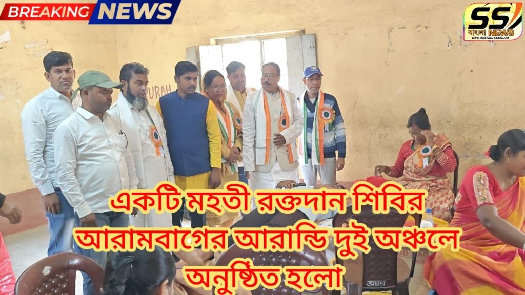বাংলার মুখ্যমন্ত্রী মমতা বন্দ্যোপাধ্যায়ের অনুপ্রেরণায় আজ আরামবাগ ব্লকের তৃণমূল যুব কংগ্রেসের উদ্যোগে এক মহতি রক্তদান শিবির অনুষ্ঠিত হলো। আজ ৮ই ফেব্রুয়ারি 2026 রবিবার সকাল 11 টায় অনুষ্ঠিত হল। এই অনুষ্ঠান আয়োজন করেন আরান্ডি ২ নম্বর অঞ্চল যুব তৃণমূল কংগ্রেসের উদ্যোগে হয়। এখানে রক্ত দাতা সংখ্যা প্রায় ১০০ জন। এই অনুষ্ঠানে উপস্থিত ছিলেন তৃণমূল কংগ্রেসের রাজ্য সম্পাদক স্বপন কুমার নন্দী, এছাড়াও তৃণমূল কংগ্রেসের অন্যান্য নেতৃত্ব ও কর্মীবৃন্দরা।