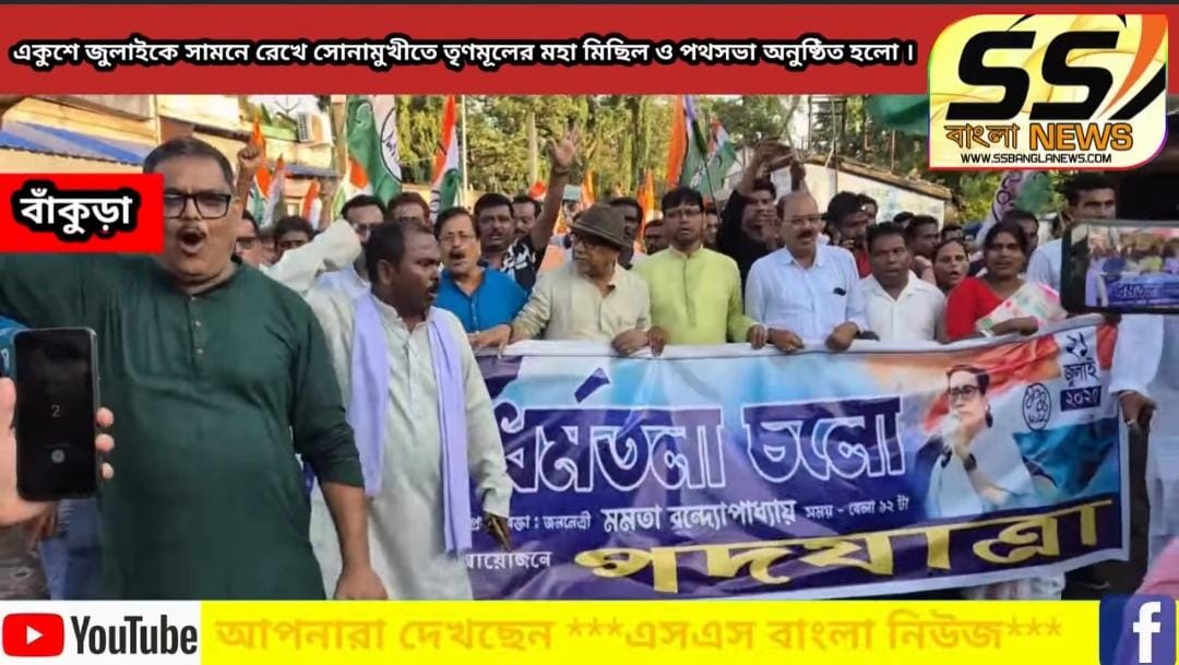 একুশে জুলাইকে সামনে রেখে সোনামুখীতে তৃণমূলের মহা মিছিল ও পথসভা অনুষ্ঠিত হলো ।