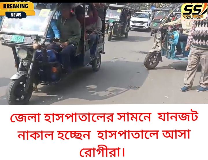 জেলা হাসপাতালের সামনে যানজট নাকাল হচ্ছেন হাসপাতালে আসা রোগীরা।