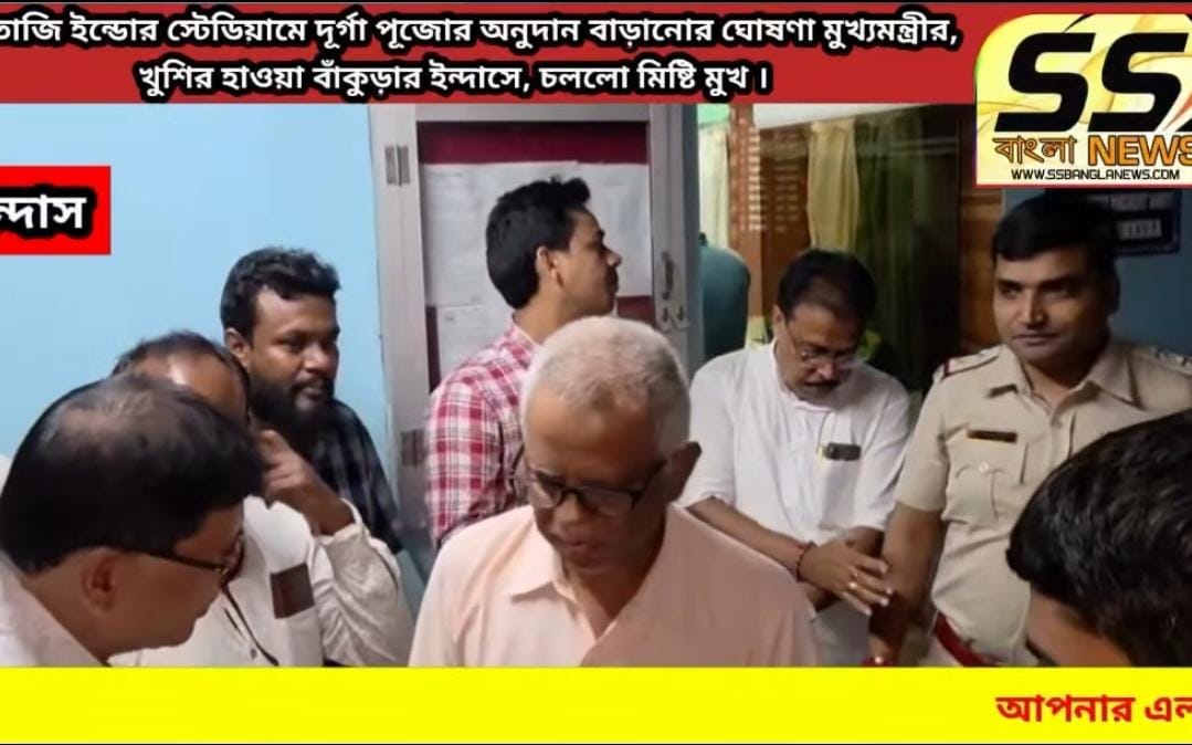 নেতাজি ইন্ডোর স্টেডিয়ামে দূর্গা পূজোর অনুদান বাড়ানোর ঘোষণা মুখ্যমন্ত্রীর,খুশির হাওয়া বাঁকুড়ার ইন্দাসে, চললো মিষ্টি মুখ ।