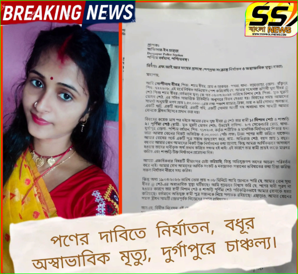 পণের দাবিতে নির্যাতন, বধূর অস্বাভাবিক মৃত্যু, দুর্গাপুরে চাঞ্চল্য।