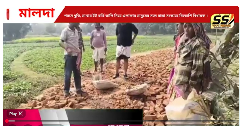 পরনে ধুতি, মাথায় ইট ভর্তি ডালি নিয়ে এলাকার মানুষের সঙ্গে রাস্তা সংস্কারে বিজেপি বিধায়ক । Feb 4, 2026 SS Bangla News