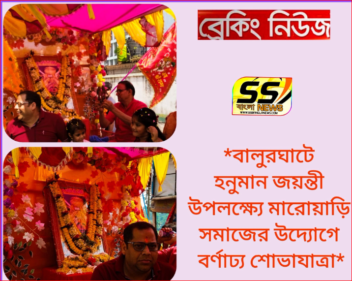 হনুমান জয়ন্তী উপলক্ষ্যে বালুরঘাট শহরে মারোয়াড়ি সমাজের উদ্যোগে আয়োজিত এক বর্ণাঢ্য ধর্মীয় শোভাযাত্রা শহরজুড়ে এক আনন্দঘন ও ভক্তিময় পরিবেশ সৃষ্টি করেছে। প্রতিবছরের মতো এবছরও এই শোভাযাত্রায় ভক্তদের বিপুল সমাগম লক্ষ্য করা যায়।