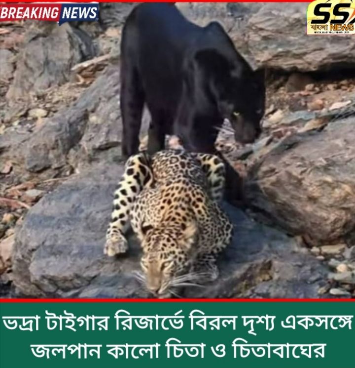 ভদ্রা টাইগার রিজার্ভে বিরল দৃশ্য একসঙ্গে জলপান কালো চিতা ও চিতাবাঘের
