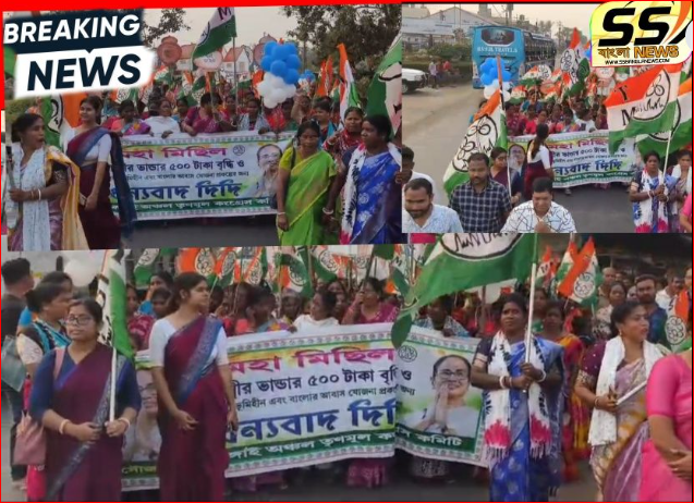 রাজ্য সরকারের জনপ্রিয় সামাজিক সুরক্ষা প্রকল্প লক্ষ্মী ভান্ডার–এর ভাতা বৃদ্ধির সিদ্ধান্তকে স্বাগত জানিয়ে বেঙ্গাই অঞ্চলে এক বর্ণাঢ্য মিছিলের আয়োজন করল All India Trinamool Congress-এর বেঙ্গাই অঞ্চল শাখা। মুখ্যমন্ত্রী Mamata Banerjee–র প্রতি কৃতজ্ঞতা জানিয়ে দলীয় নেতৃত্ব ও অসংখ্য কর্মী-সমর্থক রাস্তায় নামেন। মিছিল ঘিরে গোটা এলাকায় তৈরি হয় উৎসবের আবহ।