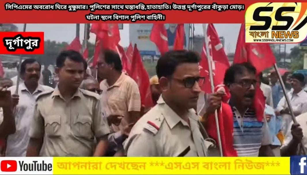 সিপিএমের অবরোধ ঘিরে ধুন্ধুমার। পুলিশের সাথে ঘস্তাধস্তি,হাতাহাতি। ঘটনা স্থলে বিশাল পুলিশ বাহিনী।