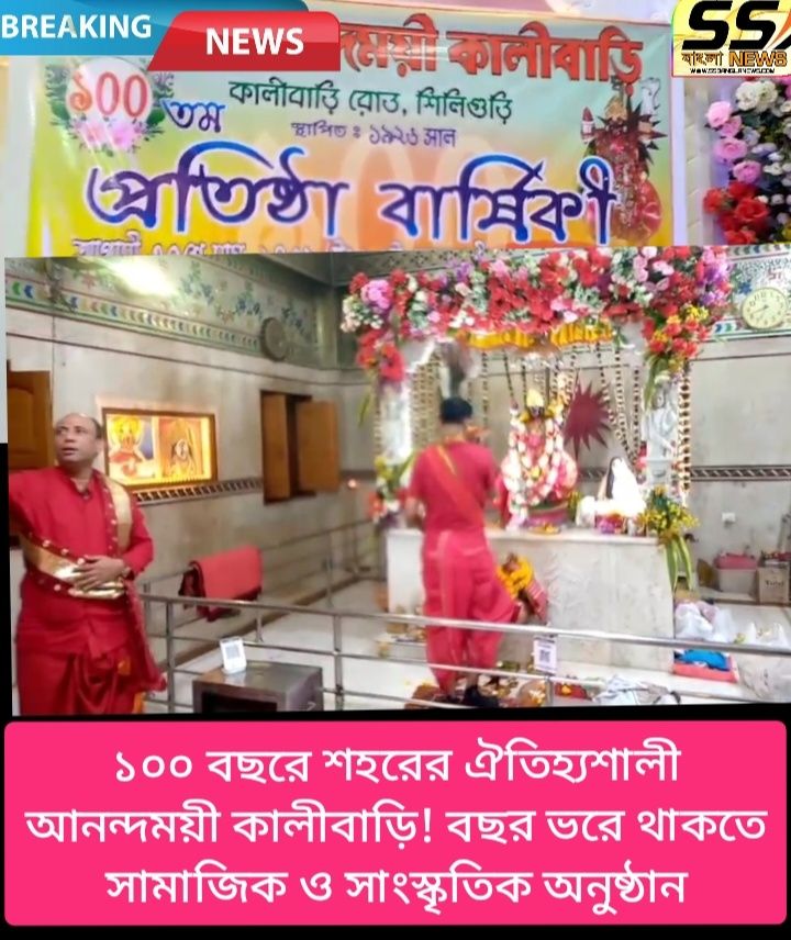 আনন্দময়ী কালী বাড়ির ১০০ বছর পূর্তি উপলক্ষে গোটা বছর ধরেই চলবে বিভিন্ন কর্মযজ্ঞ। আনন্দময়ী কালীবাড়ি শুধু শিলিগুড়ি কিংবা উত্তরবঙ্গ নয় রাজ্যজুড়েই পরিচিত এক নাম। দূর দূরান্ত থেকে ভক্তরা মায়ের কাছে নিজেদের মনষ্কামনা জানাতে ছুটে আসেন। প্রতি অমাবস্যায় মায়ের ঘটা করে কালীপুজো অনুষ্ঠিত হয়, এছাড়া মায়ের নিত্য পূজা অনুষ্ঠিত হয়ে থাকে। এই কালী মন্দিরের অন্দরে রয়েছে নবনির্মিত মা দুর্গার মন্দির। আজ আনন্দময়ী কালী মন্দিরের ১০০ বছর পূর্তি উপলক্ষে, আগত ভক্তদের জন্য ভোগ প্রসাদের ব্যবস্থা করা হয়েছে। পাশাপাশি সন্ধ্যায় মায়ের উদ্দেশ্যে আরতি করা হয়। আনন্দময়ী কালীবাড়ি কর্তৃপক্ষ তরফ থেকে আরো জানানো হয়েছে যেহেতু উচ্চ মাধ্যমিক পরীক্ষা চলছে, তার কথা চিন্তা করে বর্তমানে তারা সেরকমভাবে অনুষ্ঠান করছেন না। পরীক্ষা শেষ হলে বিভিন্ন অনুষ্ঠানের আয়োজন করবে আনন্দময়ী কালীবাড়ি কর্তৃপক্ষ। সংশ্লিষ্ট কর্তৃপক্ষের তরফ থেকে এই বিষয়ে আরো জানানো হয় যে, সারা বছর ধরেই বিভিন্ন সাংস্কৃতিক অনুষ্ঠানের আয়োজন করা হবে। যেখানে বহিরাগত শিল্পীদের ছাড়াও স্থানীয় শিল্পীরা নিজেদের শিল্পকলা পরিদর্শন করবেন। এছাড়া রক্তদান শিবিরের আয়োজন দুস্থদের মধ্যে জামা কাপড় বিতরণসহ একাধিক কর্মসূচি রয়েছে।