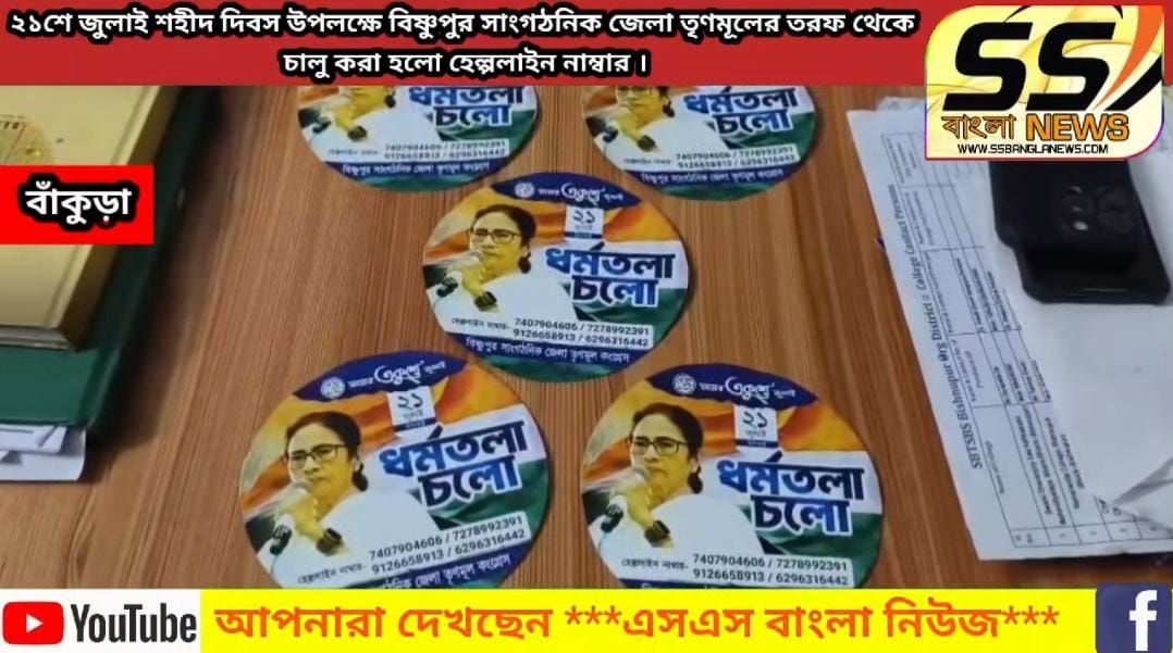 ২১শে জুলাই শহীদ দিবস উপলক্ষে বিষ্ণুপুর জেলা তৃণমূলের তরফ থেকে চালু করা হলো হেল্পলাইন নাম্বার ।