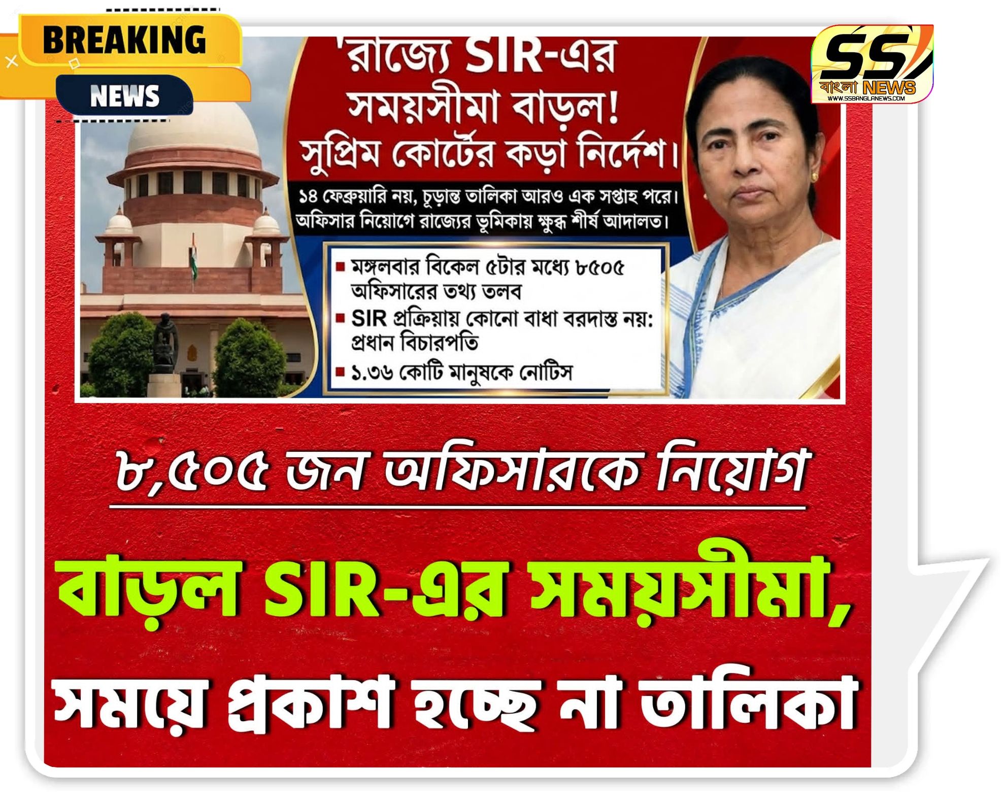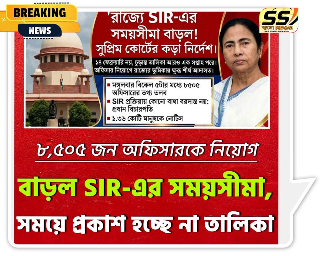 নয়া দিল্লি: ভোটার তালিকা সংশোধন সংক্রান্ত SIR প্রক্রিয়ায় নতুন মোড়। সুপ্রিম কোর্ট অতিরিক্ত সময় দেওয়ায় নির্ধারিত দিনে চূড়ান্ত তালিকা প্রকাশ হচ্ছে না। স্ক্রুটিনির কাজ সম্পূর্ণ করতে আরও প্রায় এক সপ্তাহ সময় দেওয়া হয়েছে।